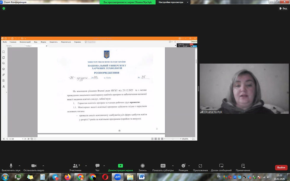 У Національному університеті харчових технологій відбувся локальний моніторинг освітньо-професійної програми «Екологія та екоменеджмент» (спеціальність 101 «Екологія») першого (бакалаврського) рівня вищої освіти. Захід було проведено в онлайн-форматі на платформі Zoom відповідно до рішення Вченої ради університету з метою внутрішнього забезпечення якості освіти.